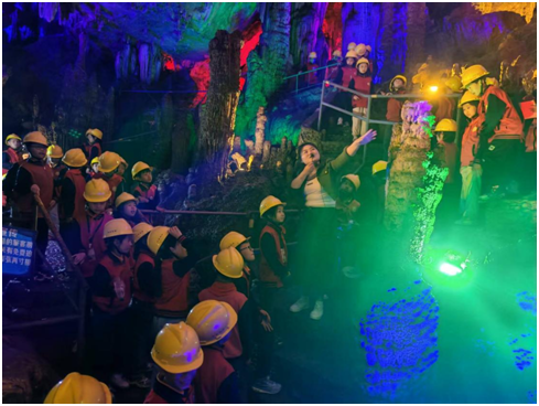 一大早,旅行車隊(duì)來到大洪山風(fēng)景名勝區(qū)研學(xué)基地,同學(xué)們深入奇幻兩王洞,通過導(dǎo)師講解,了解流水侵蝕,巖石溶解等地質(zhì)作用。感嘆鐘乳石如“玉柱擎天”,石筍似“瓊枝倒掛”,驚嘆“造化鐘神秀”的鬼斧神工,感悟“滴水穿石非一日之功”的自然偉力。紙上得來終覺淺,絕知此事要躬行。學(xué)生用粘土,石膏還原溶洞結(jié)構(gòu),從模型中窺見“地下迷宮”的萬年雕琢。