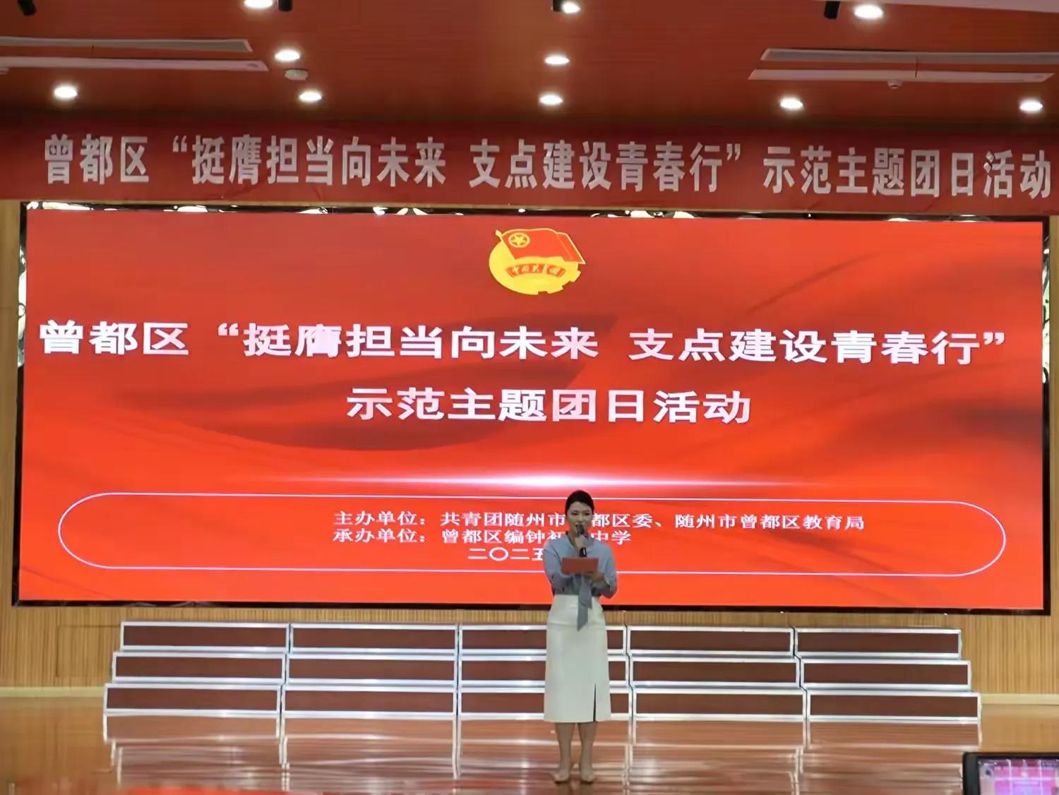 隨州新聞網(wǎng)訊 為傳承和弘揚(yáng) “五四精神”,激勵(lì)廣大青少年堅(jiān)定不移聽(tīng)黨話、跟黨走。4月28日,曾都區(qū)“挺膺擔(dān)當(dāng)向未來(lái) 支點(diǎn)建設(shè)青春行”示范主題團(tuán)日活動(dòng)在編鐘初級(jí)中學(xué)舉行。區(qū)委組織部、區(qū)教育局、團(tuán)區(qū)委、編鐘初級(jí)中學(xué)等單位領(lǐng)導(dǎo)出席活動(dòng),全區(qū)中學(xué)(中職)學(xué)校團(tuán)組織負(fù)責(zé)人、編鐘初級(jí)中學(xué)新團(tuán)員、優(yōu)秀團(tuán)員代表共計(jì) 200 余人參加活動(dòng)。