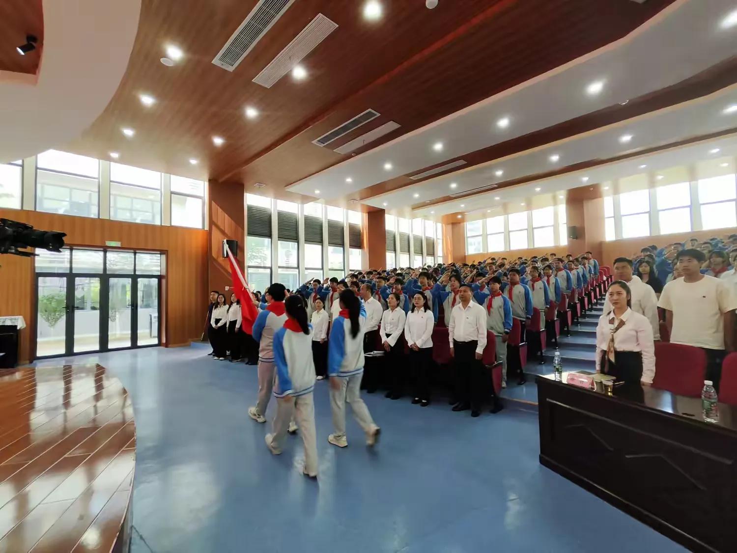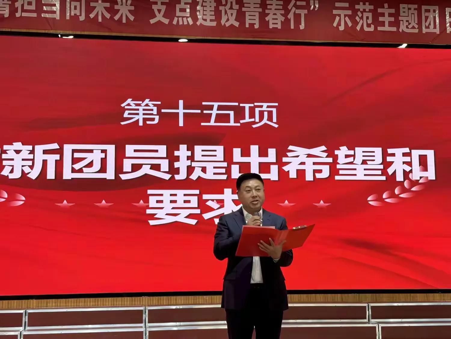 編鐘初級(jí)中學(xué)團(tuán)委宣讀新發(fā)展團(tuán)員名單,93名優(yōu)秀少先隊(duì)員光榮地成為共青團(tuán)員,為團(tuán)組織注入了新鮮血液,現(xiàn)場(chǎng)響起熱烈的掌聲,向新團(tuán)員們表示祝賀。區(qū)委組織部、區(qū)教育局、團(tuán)區(qū)委、編鐘初級(jí)中學(xué)領(lǐng)導(dǎo)上臺(tái)共同為新團(tuán)員頒發(fā)團(tuán)徽和團(tuán)員證。編鐘初級(jí)中學(xué)校長(zhǎng)王元勇對(duì)新團(tuán)員提出希望和要求,希望新團(tuán)員們堅(jiān)定理想信念,牢記入團(tuán)初心,時(shí)刻以團(tuán)員的標(biāo)準(zhǔn)嚴(yán)格要求自己,爭(zhēng)做有理想、敢擔(dān)當(dāng)、能吃苦、肯奮斗的新時(shí)代好青年,為新團(tuán)員們的成長(zhǎng)之路指明了方向。