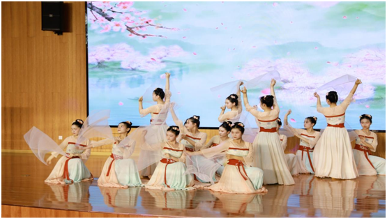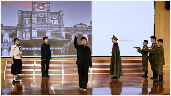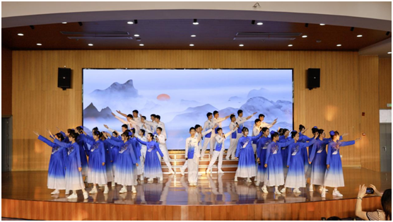 活動在舞蹈《溪女盈盈》的水墨意境中拉開帷幕。學(xué)生們以詩為舟,泛游古今:《遇見論語》重現(xiàn)春秋智慧,《青花瓷》古箏合奏演繹東方雅韻,《破曉》《覺醒年代》帶觀眾重回?zé)嵫序v的革命歲月。原創(chuàng)節(jié)目《超越時空的對話——如愿》以當(dāng)代少年視角對話先烈,將現(xiàn)場氛圍推向高潮。