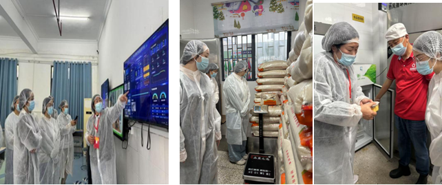 上午11時(shí),家長們?cè)趯W(xué)校分管后勤工作的領(lǐng)導(dǎo)帶領(lǐng)下,規(guī)范穿戴,以“零距離”的方式參觀食堂后廚。從食材加工間到烹飪操作區(qū),從儲(chǔ)物倉庫到餐具消毒間,每一處角落都干凈整潔、規(guī)范有序。家長們親眼見證了大米、食用油等食材的品質(zhì),了解了每日食材收貨驗(yàn)貨流程及供應(yīng)商篩選標(biāo)準(zhǔn),紛紛為食堂的精細(xì)化管理點(diǎn)贊。