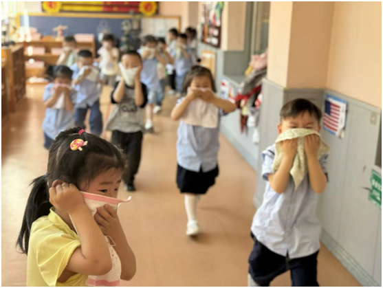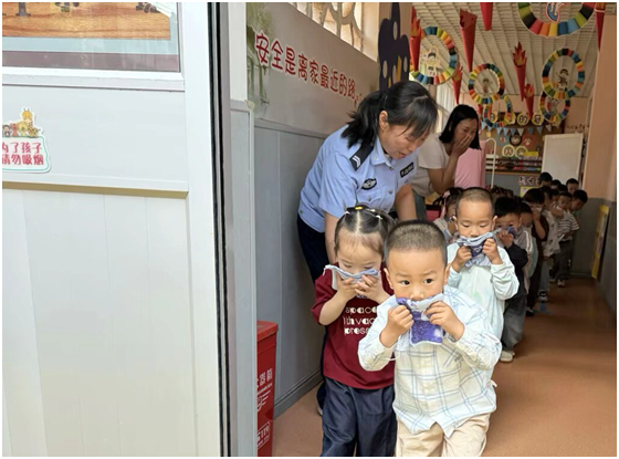 上午9時(shí),隨著急促的警報(bào)聲響起,消防演練正式拉開帷幕。各班級(jí)教師迅速組織幼兒用濕毛巾捂住口鼻,按照預(yù)定的疏散路線,快速、有序地撤離到安全區(qū)域——幼兒園操場(chǎng)。在撤離過(guò)程中,孩子們聽從教師指揮,動(dòng)作迅速且有條不紊,整個(gè)疏散過(guò)程僅用時(shí)2分43秒,便完成了全體師生的安全撤離,展現(xiàn)了幼兒園日常安全教育的扎實(shí)成效。