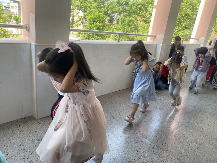 隨著警報(bào)聲響起,防震疏散演練正式開始。各班級(jí)老師立即組織學(xué)生按照既定的疏散路線,貓著腰、用手護(hù)住頭部,迅速而有序地撤離教室。同學(xué)們聽從指揮,不驚慌、不擁擠,快速向操場安全地帶疏散。短短3分鐘內(nèi),全體師生就安全集結(jié)完畢。