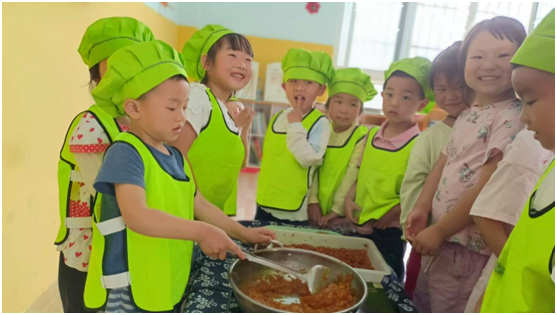 活動以"自然課堂"拉開序幕,孩子們踮起腳尖采摘飽滿的枇杷果,指尖輕觸果皮感受細密絨毛。清洗環(huán)節(jié)中,清水里沉浮的果實成為最生動的教具,孩子們在實踐中理解"干凈飲食"的意義。剝皮去核時,稚嫩的小手展現驚人耐心,果肉漸漸堆成小山,空氣中彌漫著清甜的果香。最令孩子們著迷的是熬制過程,看著冰糖與果肉在鍋中翻騰交融,琥珀色的糖漿咕嘟冒泡,大家舉著鍋鏟輪流攪拌,仿佛在進行神秘的煉金術。