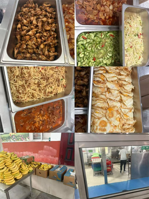 隨后,家長(zhǎng)代表們參觀了廚房加工間、操作間、蔬菜保管間等區(qū)域,并對(duì)食品留樣、原料貯存、管理臺(tái)賬、食堂衛(wèi)生檢查等進(jìn)行了督查。地面、墻面干凈整潔;食堂工作人員身著工作服,頭戴工作帽,規(guī)范佩戴口罩;各項(xiàng)規(guī)章管理制度全部上墻。家長(zhǎng)代表們?cè)诤笄诠ぷ魅藛T的講解下,對(duì)食堂的日常管理工作有了進(jìn)一步了解。
