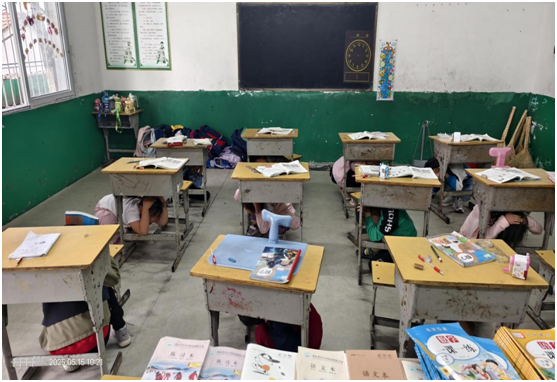 伴隨著第一聲避險警報響起,防震演練正式開始,老師和學生們立刻停止教學活動。同學們迅速用雙手抱頭、降低重心,就近到桌子下進行緊急避險。隨著第二聲警報響起,各班學生在老師的帶領下,按預定路線彎腰疾行,沿樓梯兩側(cè)迅速向操場撤離。負責樓道、轉(zhuǎn)角安全的教師全程守護,防止推擠。僅用45秒,全部學生安全抵達集結(jié)區(qū),各班立即清點人數(shù)并上報。整個演練過程組織有序,緊張而不慌亂。