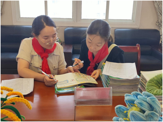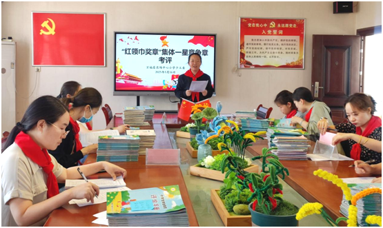 在查看材料的過程中,不同年級的輔導(dǎo)員老師圍坐在一起,交流著各自的經(jīng)驗和做法。他們互相學(xué)習(xí),互相啟發(fā),共同探索紅領(lǐng)巾獎?wù)聽幷聦嵺`活動的優(yōu)秀方法。