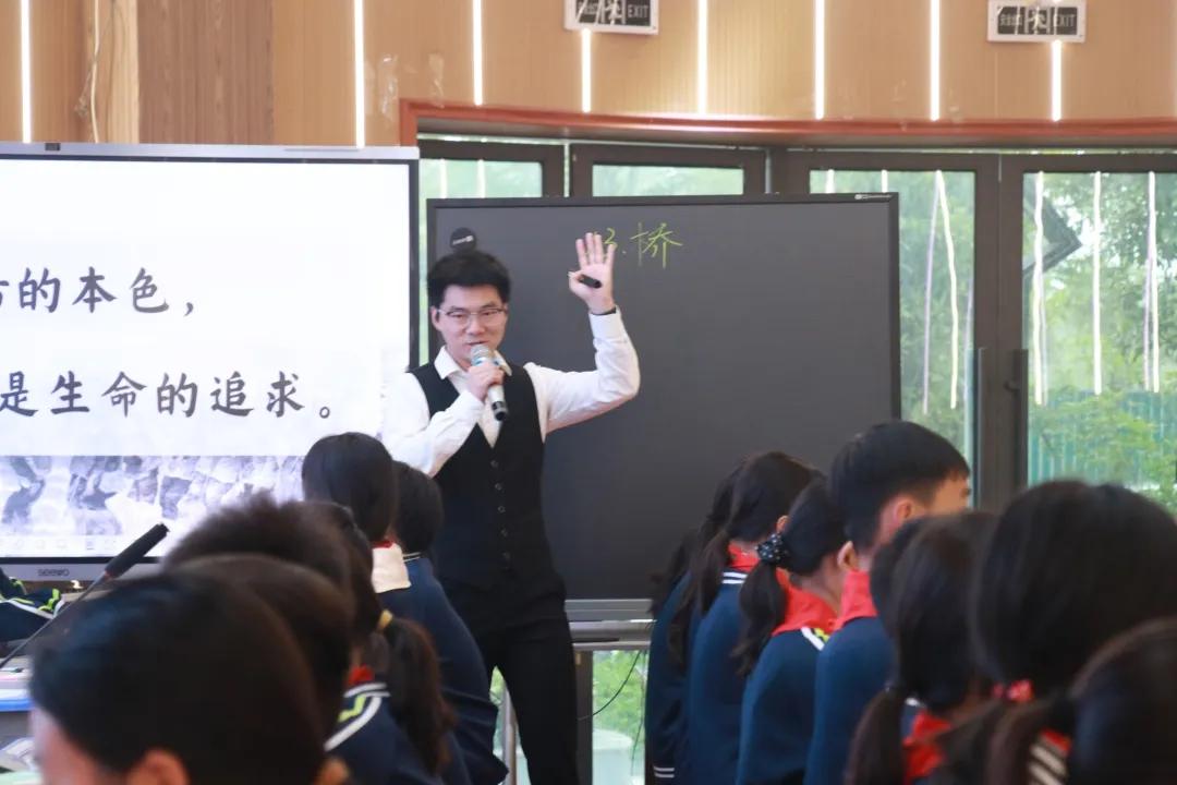 展示課環(huán)節(jié),兩位教師以小說為紐帶,構(gòu)建起跨越學段的語文學習橋梁。五豐校區(qū)小學部語文教師向類壇執(zhí)教六年級微型小說《橋》,以“平凡故事,不凡英雄”為單元主線,實現(xiàn)了語文大單元教學的目標,以“洪水”為筆,以“黨性”為墨,在文本中架起“橋梁”。五豐校區(qū)初中部語文教師趙夢雪執(zhí)教七年級小說《山地回憶》,以學校舉辦《點亮微光——課本里的小人物》課本劇活動為主線,設(shè)計三個任務,帶領(lǐng)學生漫步在孫犁筆下的太行山區(qū),通過梳理表格、分析細節(jié)描寫,感受軍民之間質(zhì)樸而深厚的情誼。