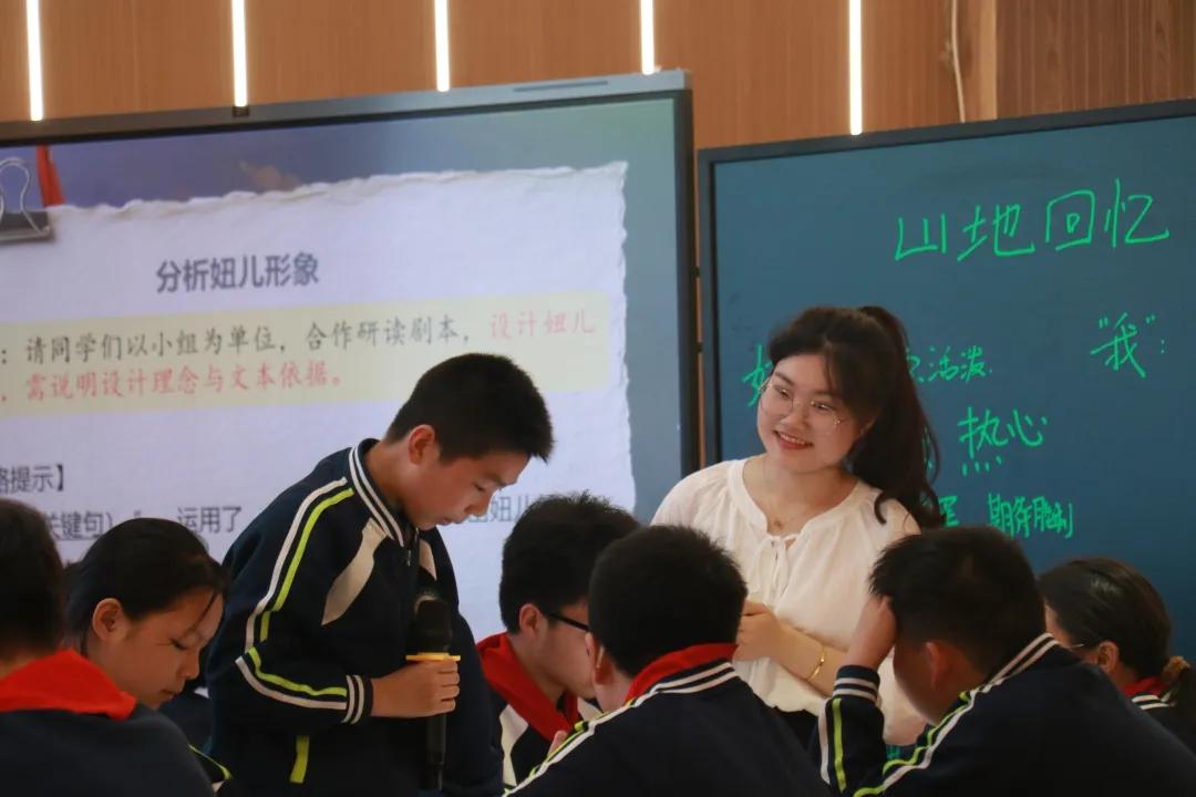 圍繞“九年一體化”語文教學的有效銜接,趙夢雪老師介紹自己執(zhí)教的《山地回憶》以學校舉辦《點亮微光——課本里的小人物》課本劇活動為主線,以小初小說教學的有效銜接為目標,設(shè)計了劇本圍讀、確定選角、宣傳準備等三個環(huán)節(jié),點亮微光人物妞兒,將課堂所學轉(zhuǎn)化為創(chuàng)作實踐,展現(xiàn)出獨特的語文素養(yǎng)與思維活力。