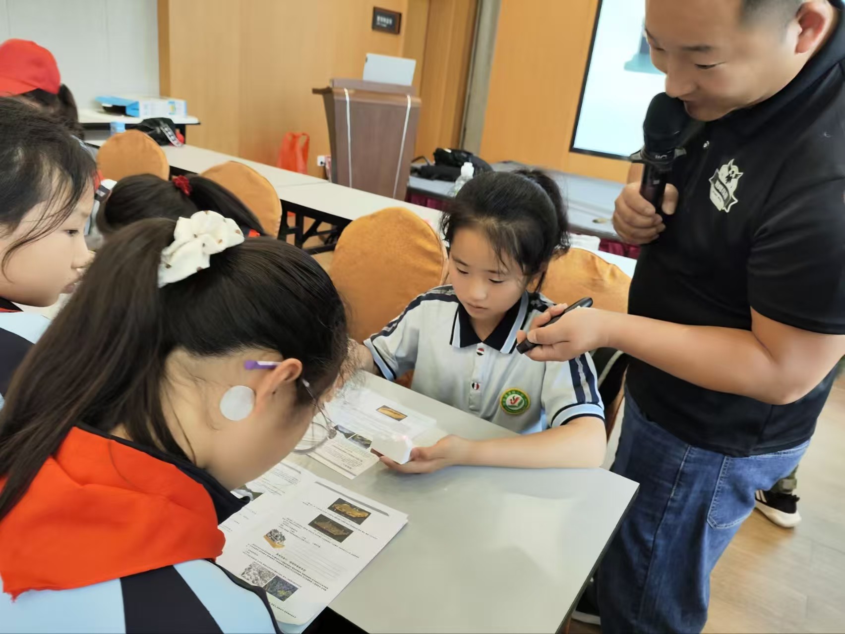 在科普課堂上,孩子們變身“小小地質(zhì)學(xué)家”與“水質(zhì)檢測員”。講解師手持石灰?guī)r標(biāo)本,用手電筒模擬光影,生動講述喀斯特地貌的形成原理,孩子們瞪大眼睛,仔細觀察著巖石表面的孔洞。隨后,他們用黏土、石膏粉親手制作地貌模型,在動手實踐中感受大自然的鬼斧神工。