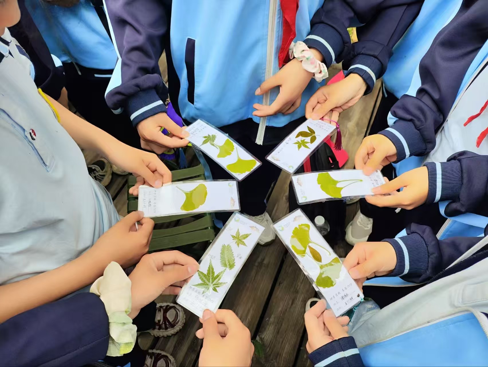 大洪山的林間空地上,一場充滿自然氣息的書簽制作活動正在進行。孩子們邊聽導(dǎo)游老師講解邊小心翼翼地將楓葉、銀杏葉等植物葉子嵌入透明樹脂,制作出自己心儀的圖案。陽光下,孩子們專注的臉龐與手中充滿創(chuàng)意的書簽相映成趣,每一份作品都藏著對自然的熱愛。