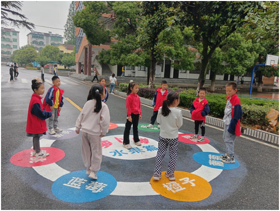 走進(jìn)校園,教學(xué)樓間的空地上、操場(chǎng)的邊角處,一幅幅色彩鮮艷、設(shè)計(jì)精巧的地面游戲圖案映入眼簾。紅、黃、藍(lán)、綠等多種色彩交織,構(gòu)成了一個(gè)個(gè)充滿童趣的游戲世界。課間十分鐘,原本安靜的空地瞬間熱鬧起來(lái),同學(xué)們紛紛奔向這些地面游戲區(qū)域,盡情享受游戲帶來(lái)的樂(lè)趣。