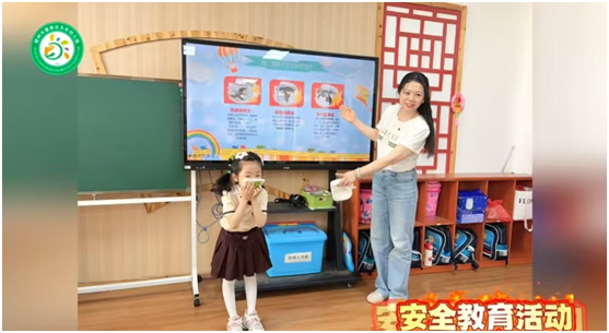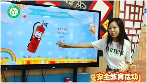 演練活動開始之前,幼兒園組織各班同上一節(jié)安全教育課,幼兒教師帶領幼兒了解火災危害,認識常見消防器材、了解器材使用方法,以及火災險情發(fā)生時的求救電話、應急逃生方法。