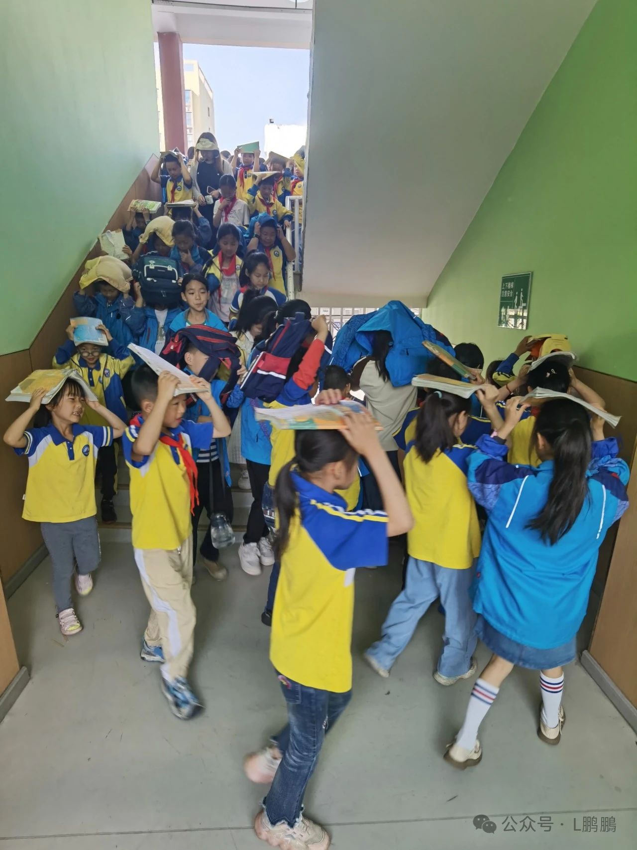 上午9點(diǎn)05分時(shí)許,校園里突然響起尖銳的警報(bào)聲。正在上課的學(xué)生們聞令而動,迅速蜷身蹲在課桌下方,動作嫻熟規(guī)范。待 “地震波” 減弱,在任課教師的引導(dǎo)和樓道安全員的疏導(dǎo)下,學(xué)生們彎腰低姿、護(hù)住頭頸部,沿著既定路線,井然有序地向操場撤離。在 3分 40秒內(nèi),全校師生便安全集結(jié)。各班班主任立即清點(diǎn)人數(shù),并由班長向劉老師匯報(bào)班級人數(shù),整個(gè)演練過程緊張有序、有條不紊,充分展現(xiàn)了師生們過硬的應(yīng)急素養(yǎng)。