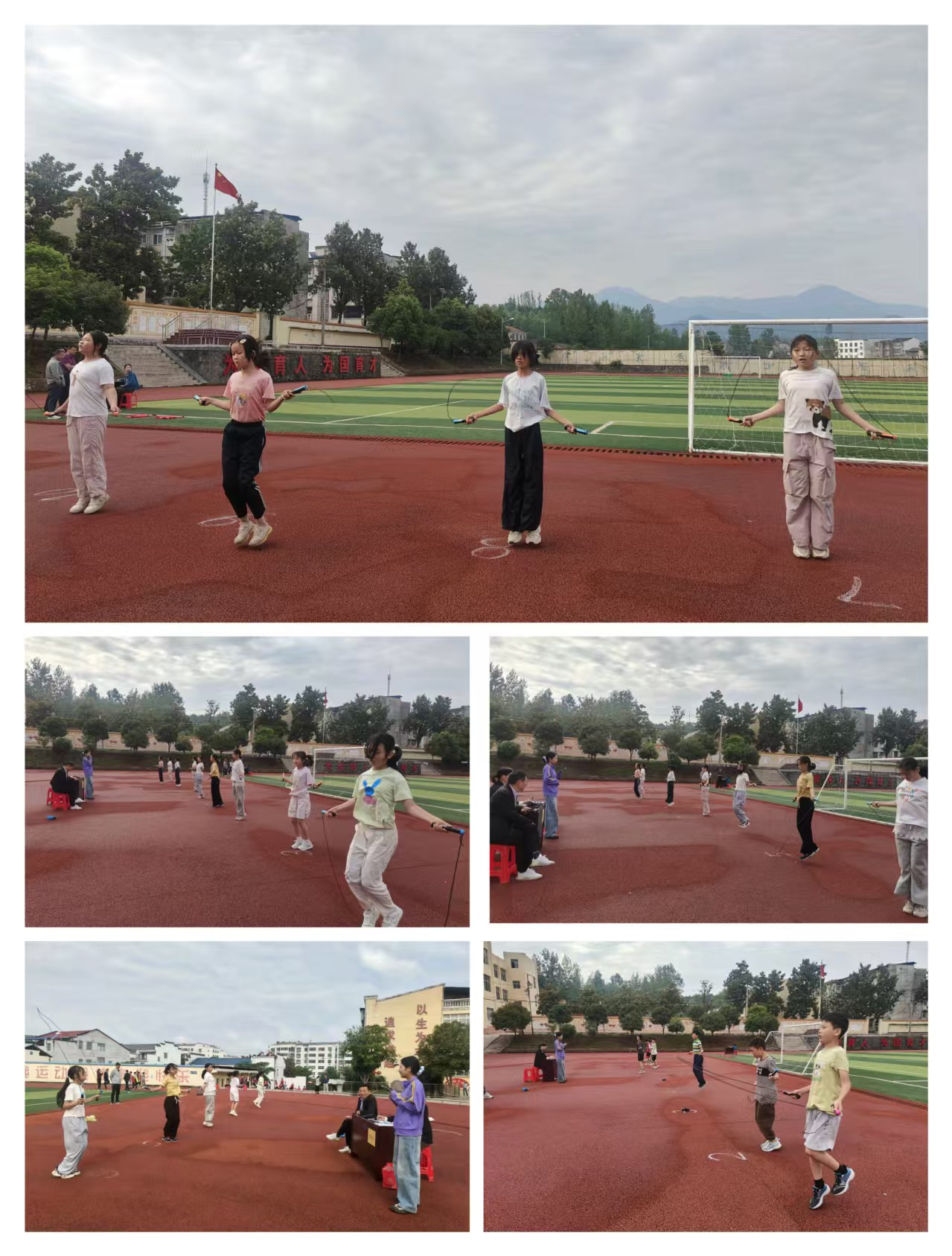 跳繩檢測現(xiàn)場,一根根彩繩飛舞,一個(gè)個(gè)身影躍動。同學(xué)們雙手緊握跳繩把手,有節(jié)奏地?fù)]動雙臂,雙腳輕盈地跳躍。速度快的同學(xué)如同靈巧的燕子,跳繩在腳下快速穿梭,令人目不暇接;耐力好的同學(xué)則保持穩(wěn)定的節(jié)奏,有條不紊地完成規(guī)定次數(shù)。場外的老師和同學(xué)們也被熱烈的氛圍感染,紛紛為選手們加油助威,加油聲、計(jì)數(shù)聲交織在一起,奏響了一曲激昂的運(yùn)動樂章。
