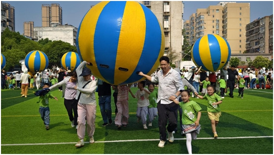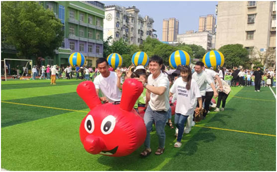 親子共闖關(guān)卡, 默契升溫愛(ài)意。運(yùn)動(dòng)會(huì)巧妙融合哪吒“我命由我不由天”的勵(lì)志精神,設(shè)置了“混天綾接力”“火焰球出擊”等合作項(xiàng)目。爸爸們彎腰充當(dāng)“障礙橋”,孩子靈活攀爬;媽媽們與寶貝共推“火焰球”完成挑戰(zhàn),F(xiàn)場(chǎng)溫馨瞬間頻現(xiàn),家長(zhǎng)與孩子在協(xié)作中自然流露的擁抱與擊掌,成為最動(dòng)人的風(fēng)景。
