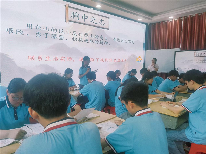 蔣靜老師執(zhí)教七年級語文AI融合課《登高望遠(yuǎn) 思接千載——登臨詩群文閱讀》,借助智能平臺實現(xiàn)詩歌情感分析與跨時空對話,學(xué)生沉浸于詩意情境,學(xué)科素養(yǎng)與AI應(yīng)用能力同步提升。