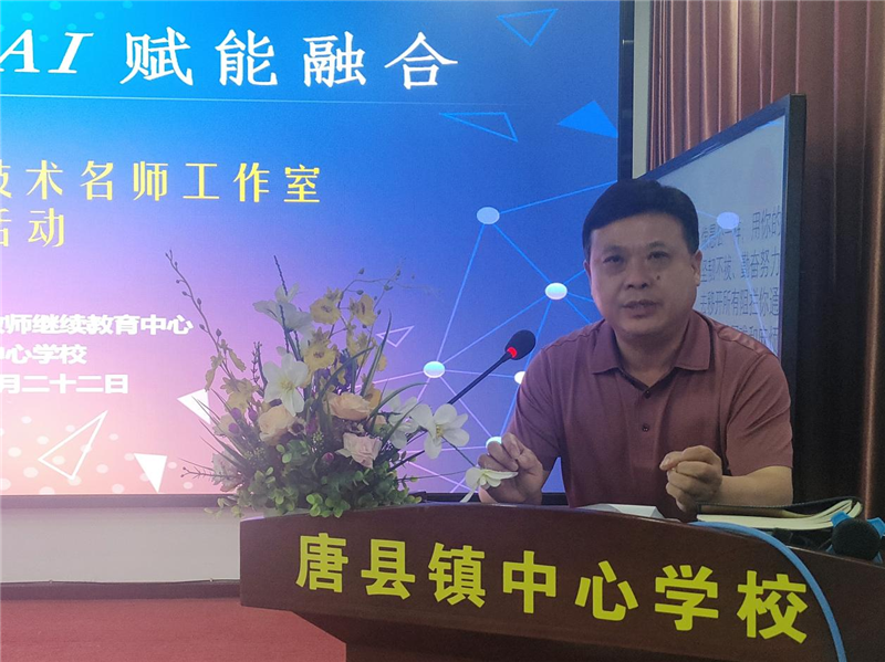 隨州日報訊(通訊員:代旭、王輝 攝影:汪雄偉、彭森)5月22日,隨縣中小學(xué)教師繼續(xù)教育中心在唐縣鎮(zhèn)中心學(xué)校成功舉辦“項目驅(qū)動創(chuàng)新,AI賦能融合”王輝名師工作室送教培訓(xùn)活動。全縣各鎮(zhèn)(場)信息技術(shù)教師、分管校長及名師工作室成員齊聚一堂,共研信息科技項目式教學(xué)和AI技術(shù)與學(xué)科教學(xué)的創(chuàng)新實踐。