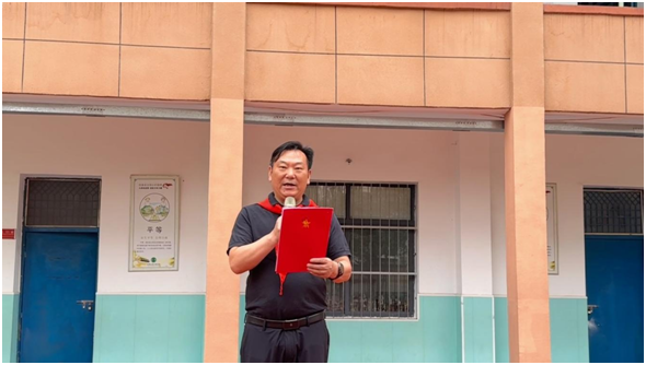 儀式在激昂的《出旗曲》中拉開帷幕,全體師生身姿挺拔、神情肅穆。少先隊(duì)員們以標(biāo)準(zhǔn)的隊(duì)禮向隊(duì)旗致敬,熾熱的目光中滿是崇敬;其余人員行注目禮,眼神堅(jiān)定而專注。隊(duì)旗立定,《少年先鋒隊(duì)隊(duì)歌》激昂奏響。全體人員齊聲高歌,嘹亮的歌聲回蕩在校園上空,每一句歌詞都飽含著對祖國的熱愛、對少先隊(duì)的忠誠,似青春的號角,激勵著少年們奮勇向前,也為這場意義非凡的入隊(duì)儀式奏響了振奮人心的序曲。