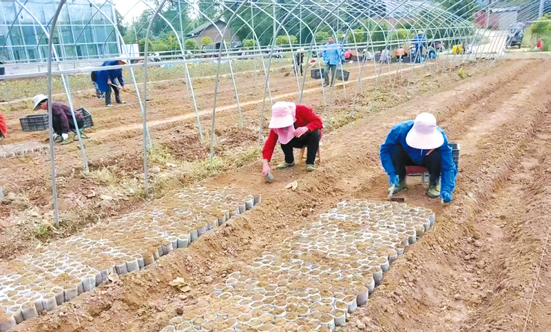 踏入岳雄豐生態(tài)農(nóng)業(yè)公司育苗基地,一株株“長(zhǎng)林系列”油茶苗挺著嫩綠的腰桿,工人們正忙著將160萬(wàn)株新苗移栽進(jìn)營(yíng)養(yǎng)缽。