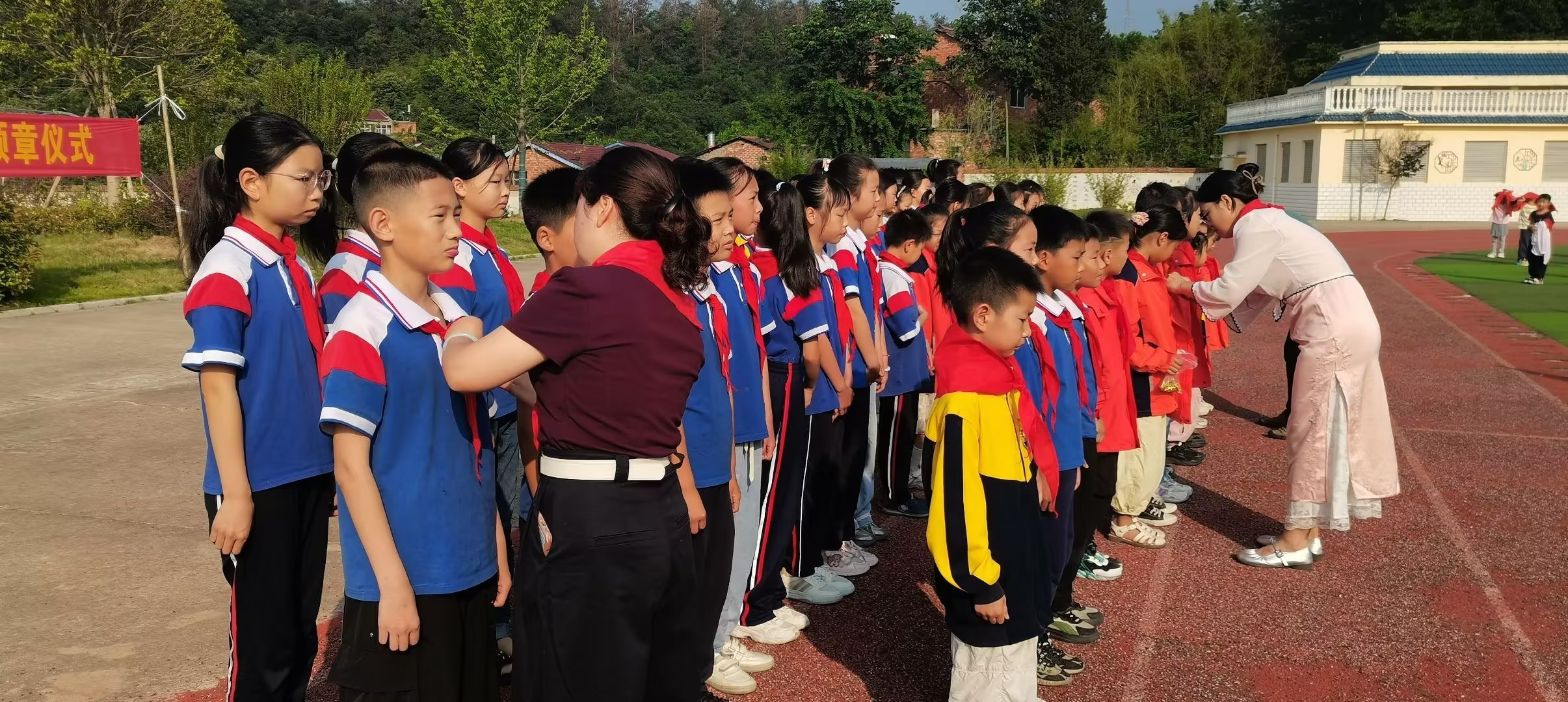 隨后,學校大隊輔導員宣讀了新隊員名單,32名新隊員即將加入中國少年先鋒隊這個光榮的集體。在歡快的音樂聲中,高年級優(yōu)秀隊員手捧紅領巾,鄭重地為新隊員佩戴。鮮艷的紅領巾在新隊員的胸前飄揚,他們的臉上洋溢著自豪與喜悅。新隊員們高高舉起右手,在隊旗下莊嚴宣誓,稚嫩而堅定的聲音回蕩在校園上空:“我是中國少年先鋒隊隊員。我在隊旗下宣誓:我熱愛中國共產黨,熱愛祖國,熱愛人民,好好學習,好好鍛煉,準備著:為共產主義事業(yè)貢獻力量!”