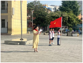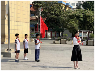 儀式在莊嚴(yán)的升旗儀式中拉開帷幕。出隊旗、唱隊歌,全體師生精神抖擻,鮮艷的隊旗指引著前進(jìn)方向。大隊輔導(dǎo)員宣讀入隊決定,周語彤等100余名新隊員光榮加入中國少年先鋒隊。
