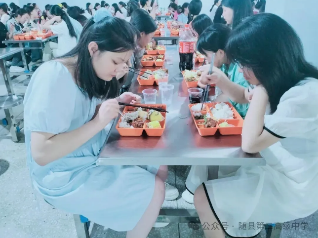 美食上桌了,同學們迎來了最期待的歡樂“食”光:西瓜與哈密瓜在齒間留香,像極了解開數(shù)學壓軸題時靈光乍現(xiàn)的舒暢。大雞腿泛著琥珀色的光,酥脆外皮下包裹著蓄勢待發(fā)的力量——這是屬于沖刺者的補給站,每一口咬下都在說:“你的筆尖值得被碳水武裝。”