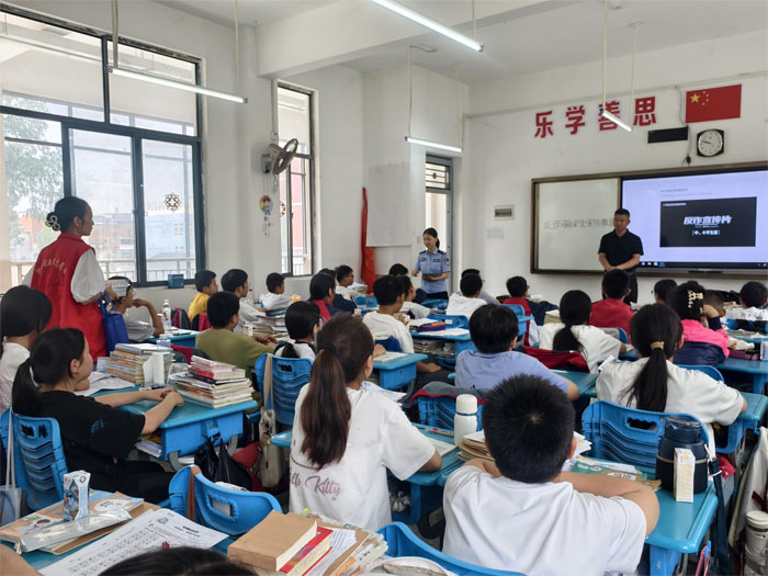 6月4日,晨光初照,厲山鎮(zhèn)派出所與司法所的同志們踏入了厲山鎮(zhèn)中心學(xué)校的課堂,為學(xué)生們帶去了一堂生動(dòng)的反詐宣教課。