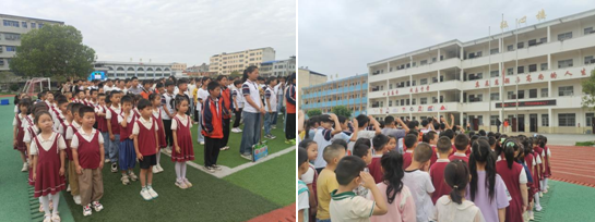 孩子們首先參加了莊嚴的升旗儀式。與小學(xué)的哥哥姐姐們并肩肅立,行注目禮,聆聽國歌,仰望五星紅旗冉冉升起。這堂生動的愛國主義教育課,讓孩子們初步感受到了小學(xué)的儀式感和紀律性。