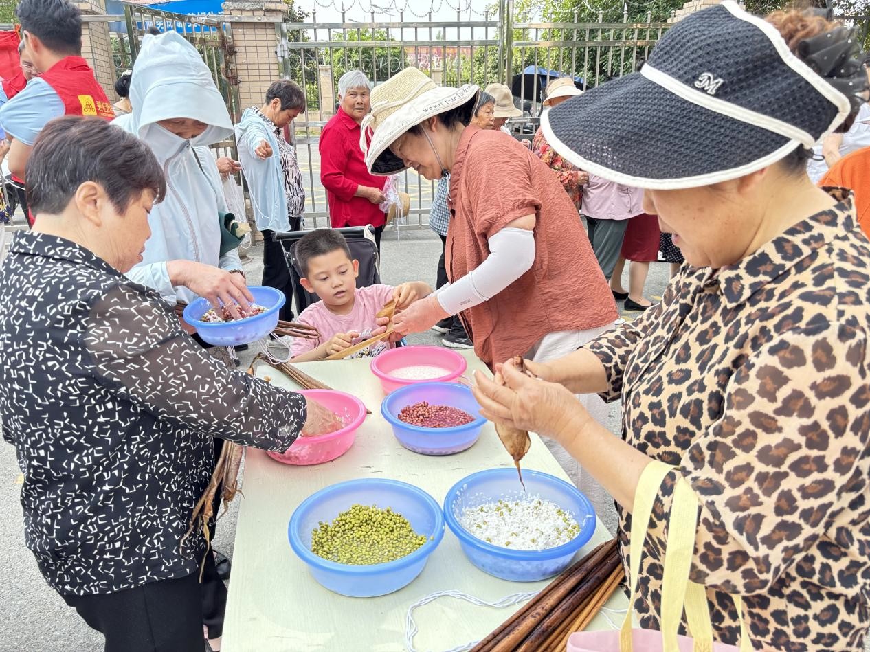 在涢水社區(qū),“五彩涢水 端午共敘鄰里情”活動(dòng)現(xiàn)場暖意融融。街道包保干部深入一線,與老年大學(xué)學(xué)員、“涢水大媽”志愿者、物業(yè)人員及居民們歡聚一堂。傳統(tǒng)美食制作區(qū)成了溫情課堂,“涢水大媽”化身巧手導(dǎo)師,耐心傳授粽葉包裹技巧。烘焙爐前,居民們協(xié)作制作艾草青團(tuán)、創(chuàng)意五彩饅頭,香甜氣息里流淌著互助關(guān)懷。文化舞臺(tái)區(qū)更是精彩紛呈,經(jīng)典紅歌激昂唱響,民俗舞蹈靈動(dòng)演繹,生動(dòng)傳遞端午文化精髓,穿插其中的端午知識(shí)趣味問答,更讓文化傳承在歡聲笑語中扎根。粽葉間的默契配合、烘焙時(shí)的真誠分享、舞臺(tái)下的熱烈掌聲,共同編織成緊密的鄰里紐帶。