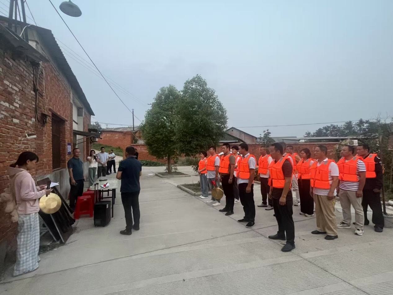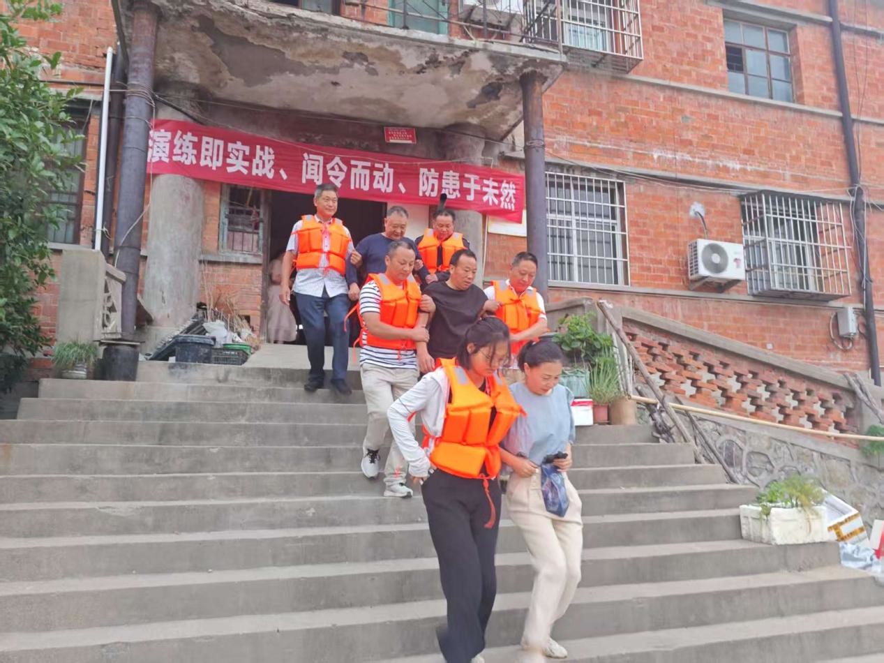 接到搶險轉移命令后,防汛指揮部各工作組的小組成員立即到崗到位,隨著敲鑼聲和防空警報聲響起,小組成員迅速到戶通知并護送居民轉運到臨時安置點。