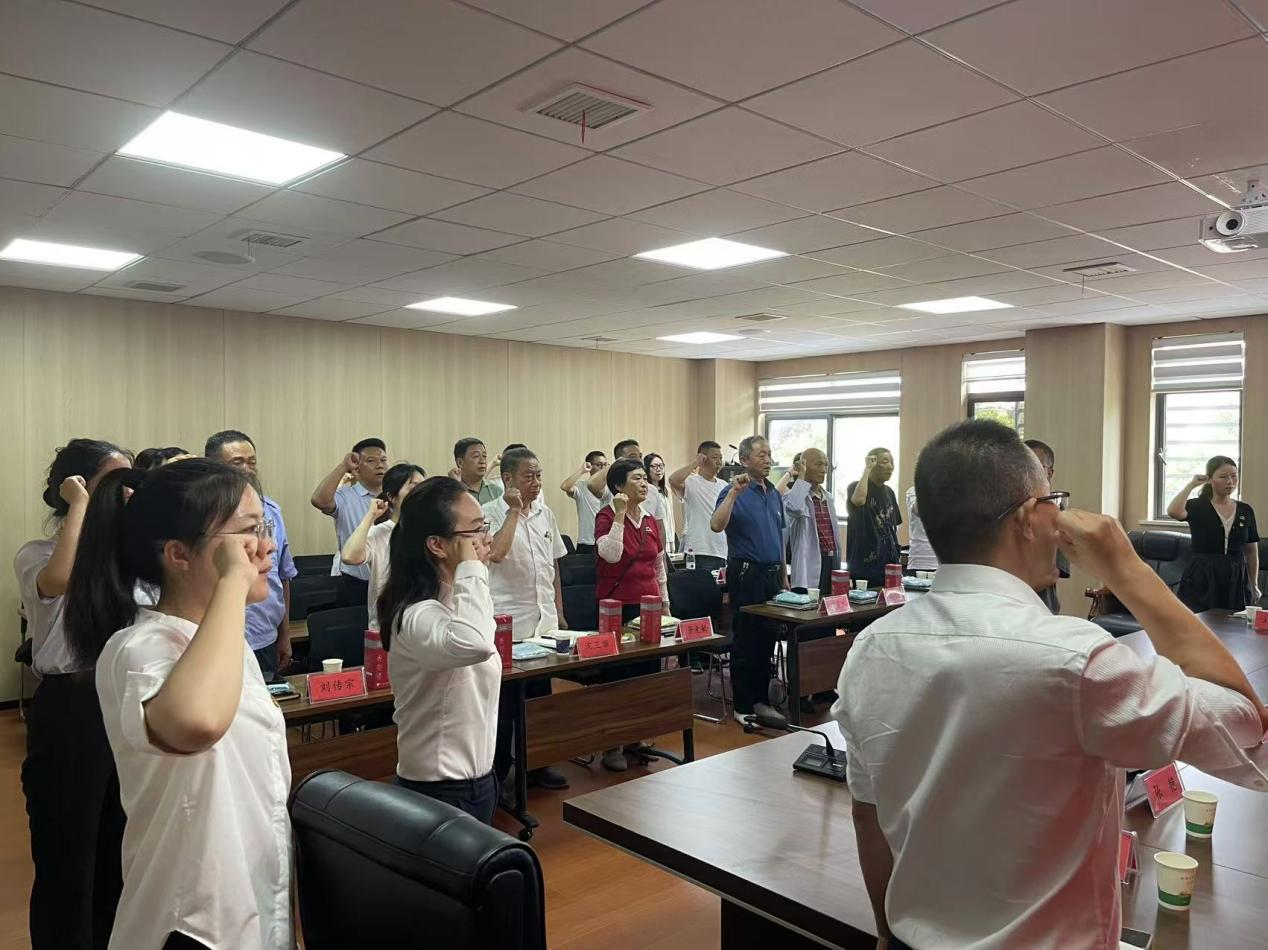 活動(dòng)現(xiàn)場,全體黨員干部起立,奏唱國歌,黨工委組織委員劉蕾領(lǐng)學(xué)習(xí)近平總書記關(guān)于老黨員、老干部的重要論述,黨工委副書記張艷帶領(lǐng)全體黨員和老黨員重溫入黨誓詞。