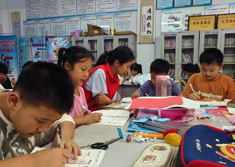 7月4日,廣水市余店鎮(zhèn)新時代文明實(shí)踐所“暑假學(xué)堂”開課,返鄉(xiāng)大學(xué)生志愿者們對孩子們進(jìn)行課業(yè)輔導(dǎo)和愛心陪護(hù)。志愿者仔細(xì)檢查孩子們作業(yè)完成情況,組織學(xué)生集中觀看安全防溺水主題教育視頻。通過教育活動,為孩子們安全度過假期提供堅(jiān)實(shí)保障。 (隨州日報(bào)通訊員高曉涵、盧玉鑫攝)