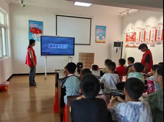 安全教育是開班第一課的重中之重。志愿者們通過案例講解、情景模擬等方式開展防溺水宣講,從“遠(yuǎn)離危險水域” 的基礎(chǔ)常識,到“智慧呼救”“同伴互助”的實用技巧,層層遞進(jìn)的內(nèi)容讓孩子們聽得專注;訂柎饡r,一只只小手踴躍舉起,稚嫩卻堅定地回答,顯露出孩子們強烈的安全意識。