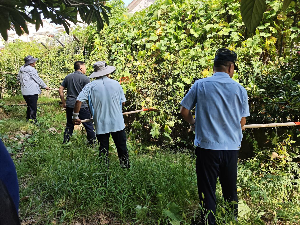 行動(dòng)前,社區(qū)、物業(yè)公司進(jìn)行了“毀綠點(diǎn)”排查,通過線上線下相結(jié)合的方式,督促居民們自行處理私自開墾的菜地。行動(dòng)中,綜合執(zhí)法中心工作人員負(fù)責(zé)現(xiàn)場秩序維護(hù)與執(zhí)法保障,耐心做好宣傳解釋工作,并對相關(guān)群眾開展宣傳教育,引導(dǎo)居民們樹立綠色生活理念。社區(qū)工作人員與物業(yè)人員一起,拔除菜苗、清理雜物,對毀綠種菜區(qū)域進(jìn)行全面清理。盡管天氣炎熱,但大家干勁十足,經(jīng)過一上午的努力全部清理完畢。