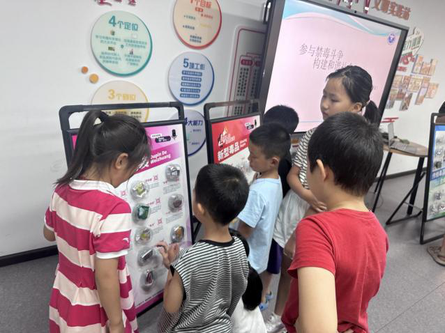 活動中,禁毒知識變得生動有趣。志愿者以“有害物質(zhì)的變身術”進行講解,傳統(tǒng)有害物外觀可能很普通,卻能被制成極具危害的物質(zhì);另一種粉末狀有害物看似尋常,實則危害巨大。人工合成有害物則被比作“彩色藥片的陷阱”,有的像日常的冰糖或糖果,有的印著卡通圖案,有的包裹著鮮艷的糖紙,會偽裝成“零食”的模樣。在“識破偽裝大師”環(huán)節(jié)中,志愿者展示了偽裝成卡通貼紙、流行小零食包裝、普通電子煙油等形態(tài)的有害物質(zhì),孩子們積極搶答并識別出這些都是經(jīng)過偽裝的有害品。通過觀察學習,孩子們掌握了辨別技巧:沒有正規(guī)廠家標識的“零食”不碰、對陌生人給的飲料保持警惕、氣味怪異的“香料”可能是危險品。