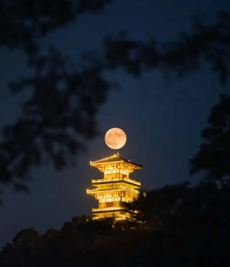 當(dāng)熱播劇完結(jié),鄂州的劇本才翻到高潮——汛期江水漫閣,大爺們架三腳架拍“孤勇者大片”,還不忘吆喝路人:“手莫抖!要拍出‘穩(wěn)了700年’的霸氣!霓虹初亮,晚風(fēng)輕拂,元明塔悠然矗立。塔影旁,一座52米高的摩天輪緩緩旋轉(zhuǎn),流光溢彩的轎艙如同懸空的寶石匣子,將整片夜空點綴成夢幻星河。牽著氣球的小販仰頭笑嚷:“別光看塔!快上去坐‘鄂州之眼’——轉(zhuǎn)一圈13分14秒,天長地久吶!”