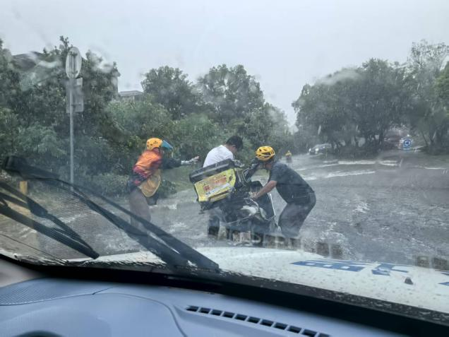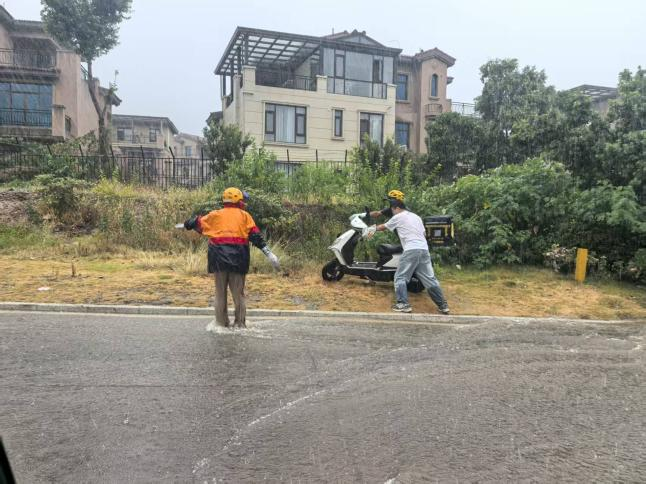 8月6日下午,風光社區(qū)上演暖心一幕。突如其來的暴雨中,正在巡查的網格員發(fā)現一名外賣小哥連人帶車摔倒在雨水中,沉重的電動車將騎手牢牢壓住,情況十分危急。