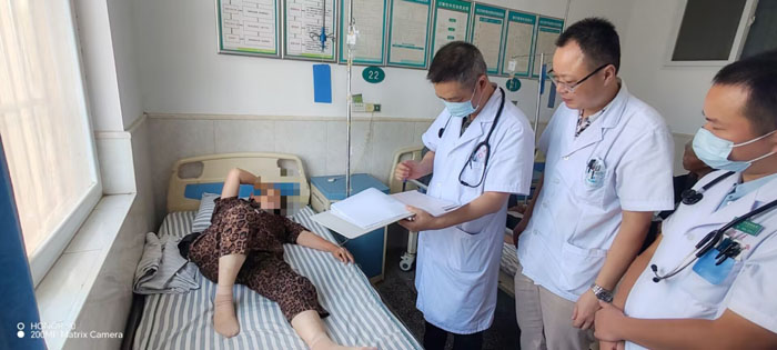義診結(jié)束后,蔣若瑜教授與曾都醫(yī)院呼吸與危重癥醫(yī)學科主任汪小春、神經(jīng)內(nèi)科主任李洪斌等專家并未停歇,馬不停蹄前往何店鎮(zhèn)中心衛(wèi)生院內(nèi)科住院部開展教學查房。他們深入病房詳細了解患者病情,重點針對一例慢阻肺急性加重期患者、一例冠心病心衰患者及一例心律失;颊哌M行多學科聯(lián)合會診,憑借專業(yè)判斷為患者優(yōu)化了更精準、有效的治療方案。