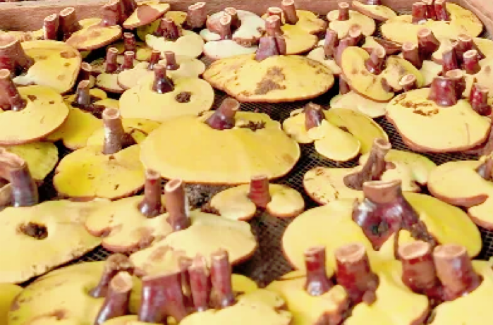 “靈芝是‘?huà)少F貨’,超過(guò) 32℃就停止生長(zhǎng)!泵肪自诖笈锝锹,指著蜷曲的菌蓋嘆氣,“今年第一茬干品僅5000斤,不及去年零頭,更糟的是收購(gòu)價(jià)驟降至20元,跌了三分之一,連雇人摘靈芝的工錢(qián)都快付不起。”