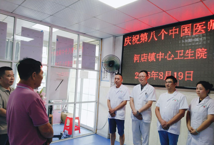 活動現(xiàn)場布置簡潔而莊重,空氣中滿是溫馨與敬意。左洪波首先代表區(qū)衛(wèi)健局在致辭中動情指出:“何店鎮(zhèn)中心衛(wèi)生院的醫(yī)師團隊,是轄區(qū)群眾健康最堅實的‘守門人’。長期以來,大家始終以‘敬畏生命、救死扶傷、甘于奉獻、大愛無疆’的職業(yè)精神為指引,在日常診療的診室里耐心問診,在公共衛(wèi)生服務的鄉(xiāng)村間奔波宣教,在應急醫(yī)療保障的關鍵時刻挺身而出,用專業(yè)的醫(yī)術與執(zhí)著的堅守,為一方百姓筑起了堅實的健康防線,為基層醫(yī)療衛(wèi)生事業(yè)的穩(wěn)步發(fā)展作出了不可替代的重要貢獻!