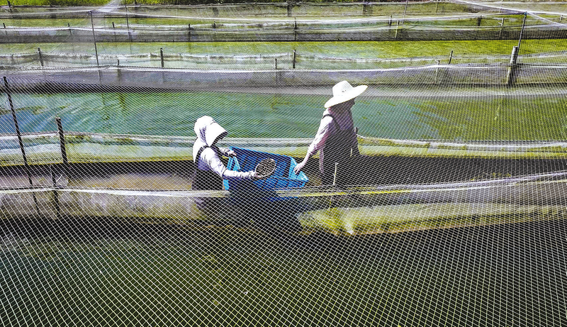 在隨縣均川鎮(zhèn)柳樹(shù)河村一處水蛭養(yǎng)殖基地,養(yǎng)殖戶胡曉雨正在和工人一起下水撒播餌料螺喂養(yǎng)水蛭。水蛭四五月育苗,九十月成熟,眼下正是水蛭養(yǎng)殖最為忙碌的時(shí)期。該基地?fù)碛兴勿B(yǎng)殖、培育和干品加工技術(shù),養(yǎng)殖的水蛭銷(xiāo)往全國(guó)各地。