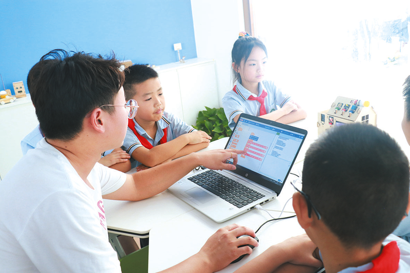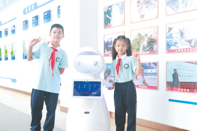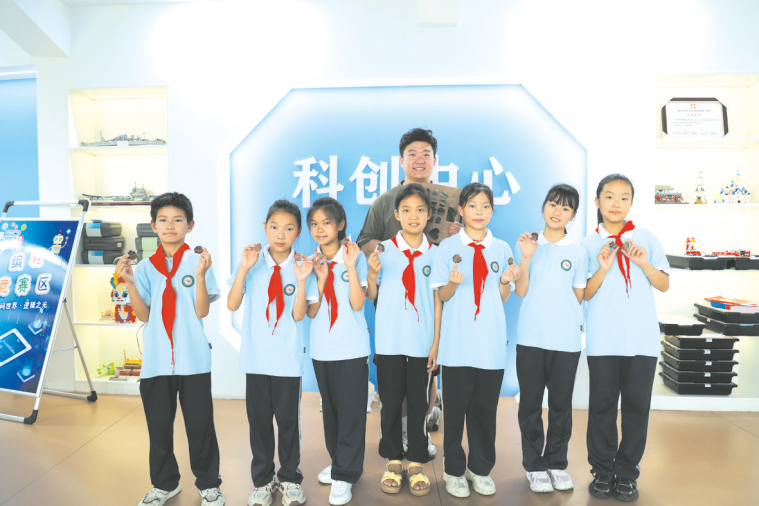 學校開設科學類校本課程。除抓好常規(guī)教學、開齊開足科學課程外,自2024年秋季起,在1-8年級每周另開設一節(jié)人工智能和創(chuàng)客教育校本課程,全面融入人工智能教育模塊,開發(fā)校本課程《人工智能》,并在小學和初中各設一個實驗班。學校還對全校的專兼職科學教師進行了系統(tǒng)培訓。這一舉措深受學生喜愛,也得到了家長的高度評價。 學校將科學教育納入課后服務。自2023年起,按照“普及型—提高型—精英型”分層設計,廣泛開設分層分類的科學類社團活動。各年級每周開設兩節(jié)科學社團活動課,分為機器人編程、科技制作和無人機三大類課程,低年級“小小科學家”通過趣味實驗啟蒙興趣,中高年級機器人社團掌握編程基礎?萍碱惿鐖F秉承在生活中啟迪智慧、在實踐中收獲知識的理念,吸引熱愛科學的小小探索者,激發(fā)他們的創(chuàng)新思維和團隊協(xié)作精神。學校先后開發(fā)出無人機飛行、無人機足球、3D打印、開源組件機器人、虛擬編程、科技制作、數(shù)字繪畫等多門創(chuàng)客社團課程,吸引了800余名學有余力且對創(chuàng)客課程有興趣的學生參加。