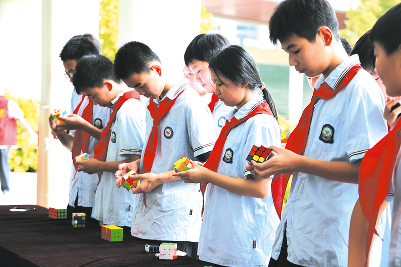 為全面提升學生科學素養(yǎng),五豐學校構建了“技能訓練—科普普及—社會實踐”三位一體的科學實踐活動體系,系統(tǒng)激發(fā)學生的科創(chuàng)熱情與實踐能力。 堅持在傳統(tǒng)活動中融入科創(chuàng)元素。一年一度的科技節(jié)吸引校內外師生、家長超5000人次參與,涵蓋科學論文、科幻畫、科技制作、種植實踐、創(chuàng)意搭建、七巧科技、實驗操作及現(xiàn)場競賽等八大類內容,魔方大賽、生物多樣性觀測、智慧農場勞動實踐等特色項目廣受好評。這些活動不僅點燃學生對科學的熱情,更成為展示創(chuàng)想、鍛煉能力的重要舞臺。