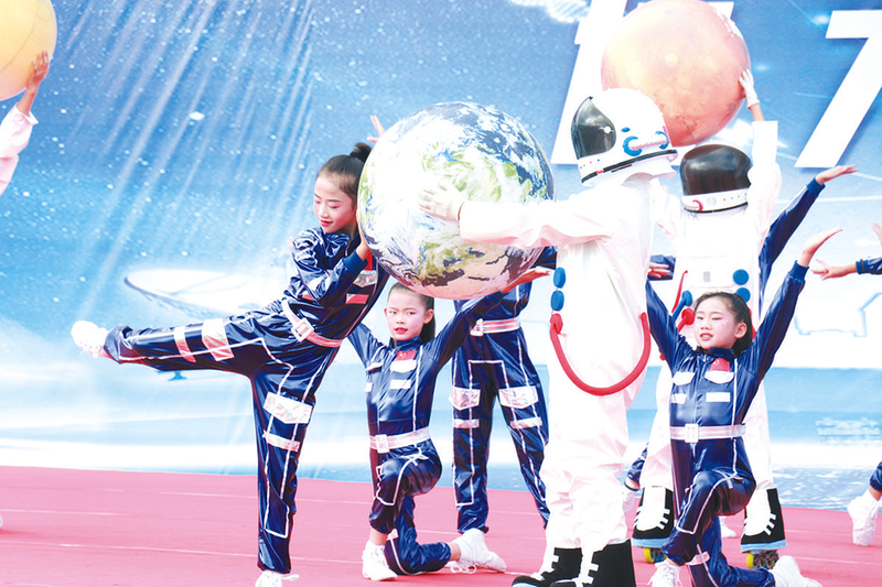 曾都區(qū)五豐學校創(chuàng)建于2020年,作為一所公辦九年一貫制高標準、現(xiàn)代化學校,學校深入貫徹“雙減”精神,落實《教育部等十八部門關于加強新時代中小學科學教育工作的意見》,以“辦一所承載美好未來的現(xiàn)代學校”為辦學愿景,確立了以“創(chuàng)客教育”促智慧校園建設發(fā)展的戰(zhàn)略目標。 “過去,許多學校面臨科學教育資源不足、師資力量薄弱、課程單一等困境!蔽遑S學校校長文敖坦言,“科學教育不僅是必修課,更是貫穿教育全程的核心內容;不僅是輔助點綴,更是培養(yǎng)學生核心素養(yǎng)的底色。特別是在‘雙減’背景下,如何做好科學教育加法,成為許多學校亟待解決的課題。” 頂層設計,為科學教育實施提供制度保障,規(guī)劃戰(zhàn)略布局。學校成立由校長任組長的科學教育工作領導小組,制定《五豐學?茖W教育總體方案》和《科學教育五年發(fā)展規(guī)劃》,構建“1+3+N”管理網絡——以科學教育中心為核心,下設課程研發(fā)、活動策劃、資源保障三個工作組,由科技輔導員、學科教師構成的“科學精兵導師團”,覆蓋所有學科教研組,形成全員參與、全程融入的科學教育體系。 五豐科普舞臺劇《飛天夢》