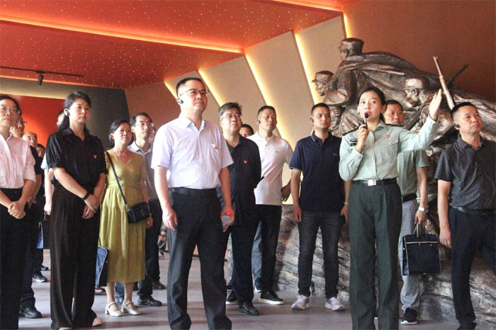隨后,全體人員走進新四軍第五師革命歷史陳列館。館內(nèi),銹跡斑斑的步槍、泛黃的戰(zhàn)地日記、磨損的軍鞋靜靜陳列,無聲訴說著鄂豫邊區(qū)軍民浴血奮戰(zhàn)的崢嶸歲月;墻上的黑白照片里,戰(zhàn)士們與群眾并肩勞作、根據(jù)地辦學育人的場景,讓“堅守初心、服務人民”的精神內(nèi)核愈發(fā)清晰!懊恳患奈锒际且欢熙r活的歷史,每一個故事都是一次深刻的教育。”