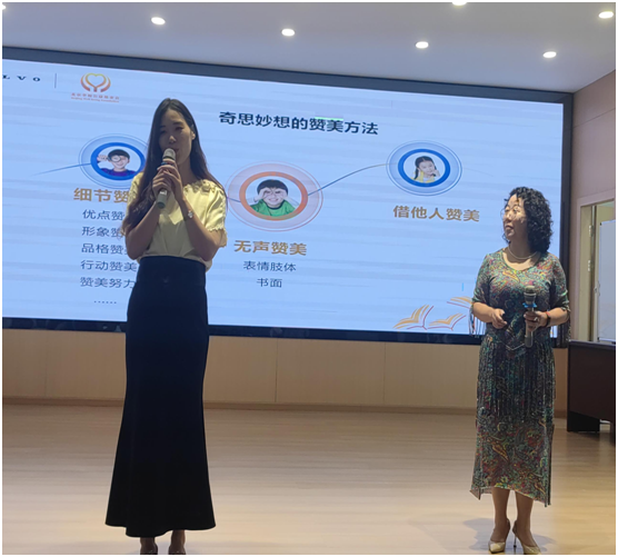團輔環(huán)節(jié),王老師以“拍拍操”熱身活躍氣氛,隨后通過“基礎贊美—抽簽練習”讓教師感受贊美力量,又詳解“三重贊美”“三明治贊美”等高階技巧,并借助情景模擬、角色扮演引導實踐;顒游猜,王老師還發(fā)起贊美打卡活動,倡議教師將技巧用于班級教學,讓贊美成為習慣。