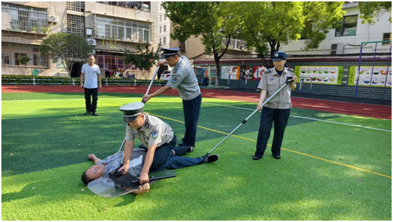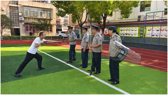 安保技能提升則聚焦“實(shí)戰(zhàn)實(shí)效”。學(xué)校特邀安保公司專業(yè)教官到校,圍繞早高峰人流疏導(dǎo)、突發(fā)沖突應(yīng)急處置、可疑人員識(shí)別等場(chǎng)景,開(kāi)展沉浸式模擬演練。教官一對(duì)一指導(dǎo)防暴盾牌、鋼叉等器械的使用規(guī)范,演示一鍵報(bào)警裝置的操作流程;參訓(xùn)安保人員認(rèn)真聆聽(tīng),反復(fù)實(shí)操演練,從快速阻隔風(fēng)險(xiǎn)到有效安撫學(xué)生情緒,力求每個(gè)環(huán)節(jié)精準(zhǔn)、熟練。