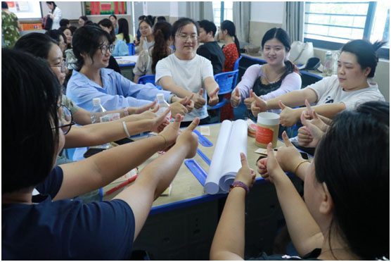 下午,王海梅、鄒慧芩兩位講師組織各學部教師參與團輔活動,通過“基礎(chǔ)贊美—抽簽練習”引導教師感受語言力量,并詳細教授“三重贊美”“三明治贊美”等技巧。現(xiàn)場教師積極參與互動,紛紛表示“培訓內(nèi)容貼合教學實際,為課堂管理提供了新思路”。
