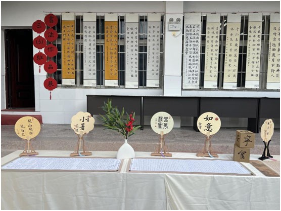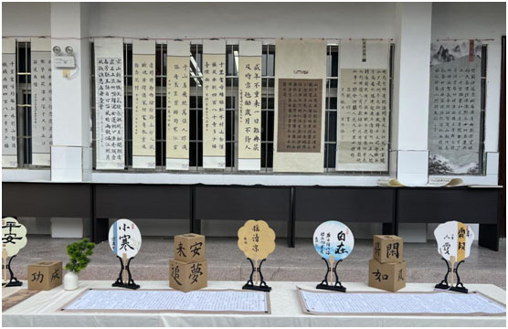 培訓(xùn)伊始,老師們?cè)诙喙δ軓d外參觀了書(shū)法特色班三(3)班學(xué)生書(shū)法作品展。一幅幅硬筆、軟筆作品美觀陳列,或清麗雅致,或?yàn)⒚摫挤。硬筆作品中,秀麗筆書(shū)寫(xiě)的楷書(shū)字橫平豎直如列陣小兵,提按轉(zhuǎn)折已見(jiàn)功力;軟筆作品里,歐楷結(jié)構(gòu)端莊、筆畫(huà)精到,透出風(fēng)采和神態(tài);行書(shū)則筆勢(shì)連綿、氣韻生動(dòng),盡顯少年意氣。